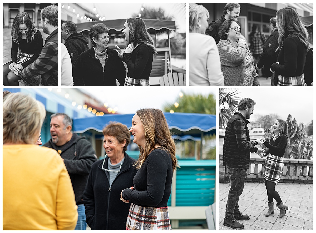 He contacted a jeweler to help him create the perfect ring for her. Cody planned out his speech. He got his friends and family to Lockside Restaurant, where they first met, under the guise of a holiday party. Cody sent her to get her nails done beforehand, so that she’d feel fancy when he asked. And then, of course, he called me.