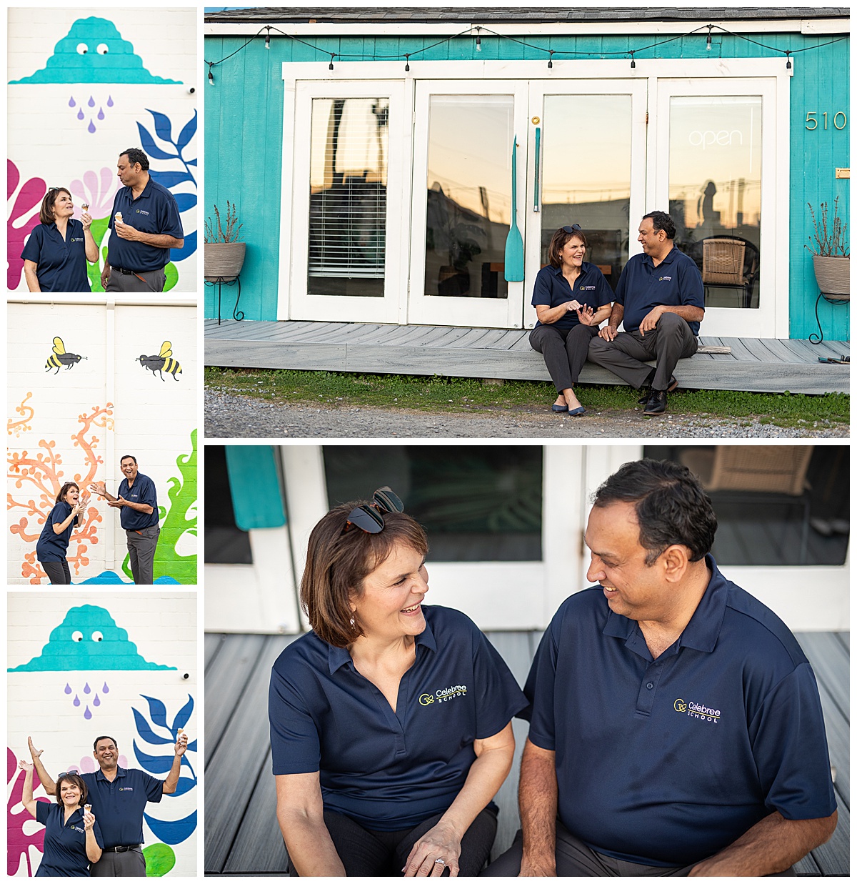 The owners of the new Celebree School in Virginia Beach (coming soon!) wanted to make sure that they had some colorful Virginia Beach headshots. They’re clearly professionals – she’s a former elementary school principal and he’s a civil engineer – but they like to have fun, too. That means that we spent time in ViBe Creative District (naturally) to update some great content for them for social media and marketing.