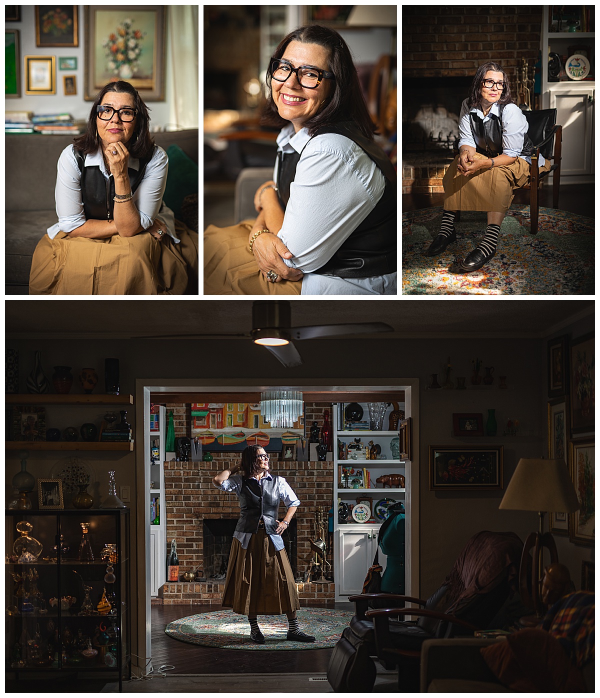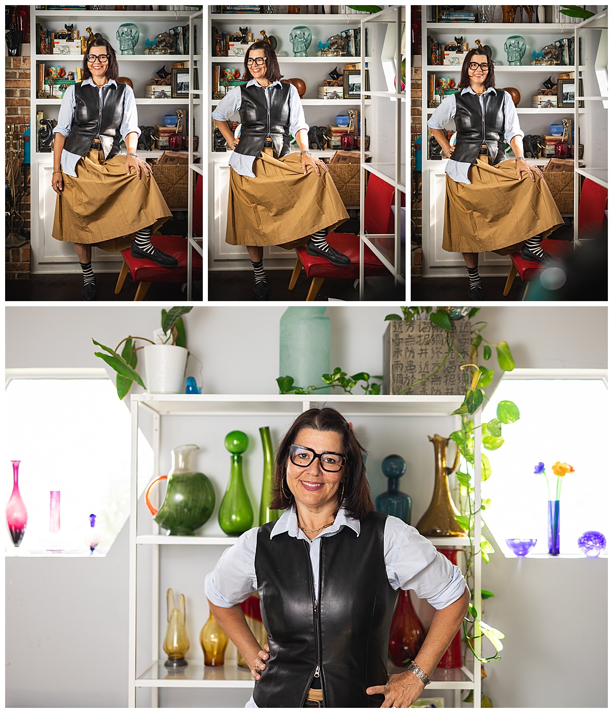 Helen has curated a really cool vibe in her house. She thrifts and collects glass and cool art. Helen even thrifts most of her clothes and puts together REALLY cool outfits that show off her personality. At the core of it, though, she’s still a professional, so we found a way to marry both her true, fun personality with that professionalism in this set of headshots. It was a BLAST to get to know her. Elizabeth Henson referred her to me, and I’m going to be forever thankful to have met such a cool human.