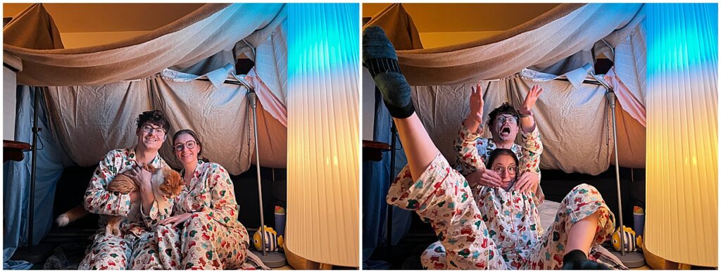 I’ve never really been in the same place for Christmas—like, ever—so traditions have been tricky. But last year, Dan and I stayed home and built a full-on living room fort. We watched Christmas movies, made cookies, slept in the fort, and woke up incredibly sore.