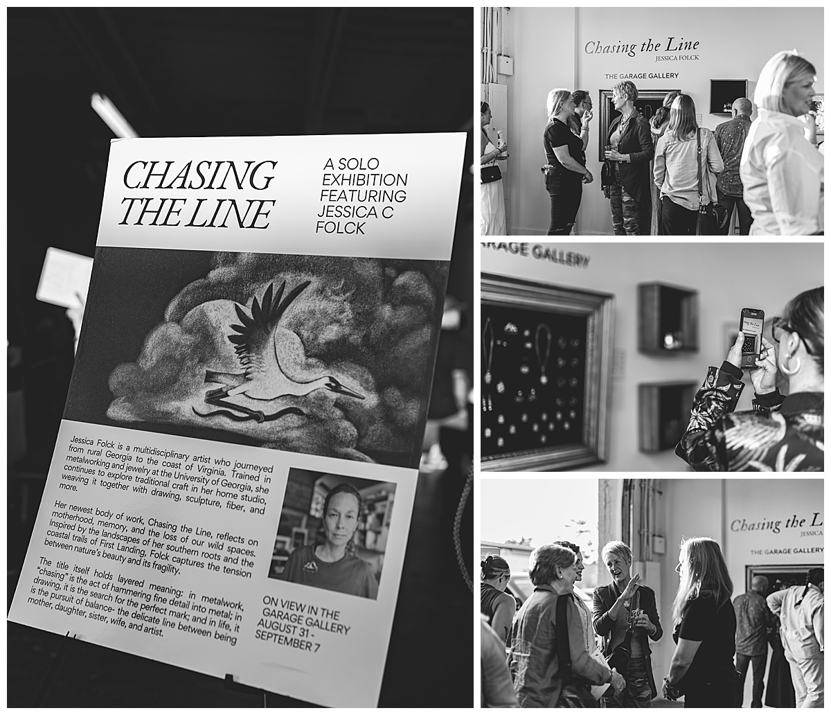 One of the best parts of my job (and I’ve got a pretty cool job), is getting to see some of the cool things happening around town. I got to be a Virginia Beach event photographer for the opening of Chasing the Line, an art exhibition by Jessica Folck at the Creative Well Arts space. It was great to see so many people out to support the arts in ViBe Creative District – and to see how quickly her pieces were selling. You want to see people succeed, especially when they’re putting themselves out there artistically. It’s not easy to do. There’s a vulnerability that comes with it that I would imagine would be overwhelming. I imagine that there’s also a sense of pride when people buy into this very personal creativity that you have.