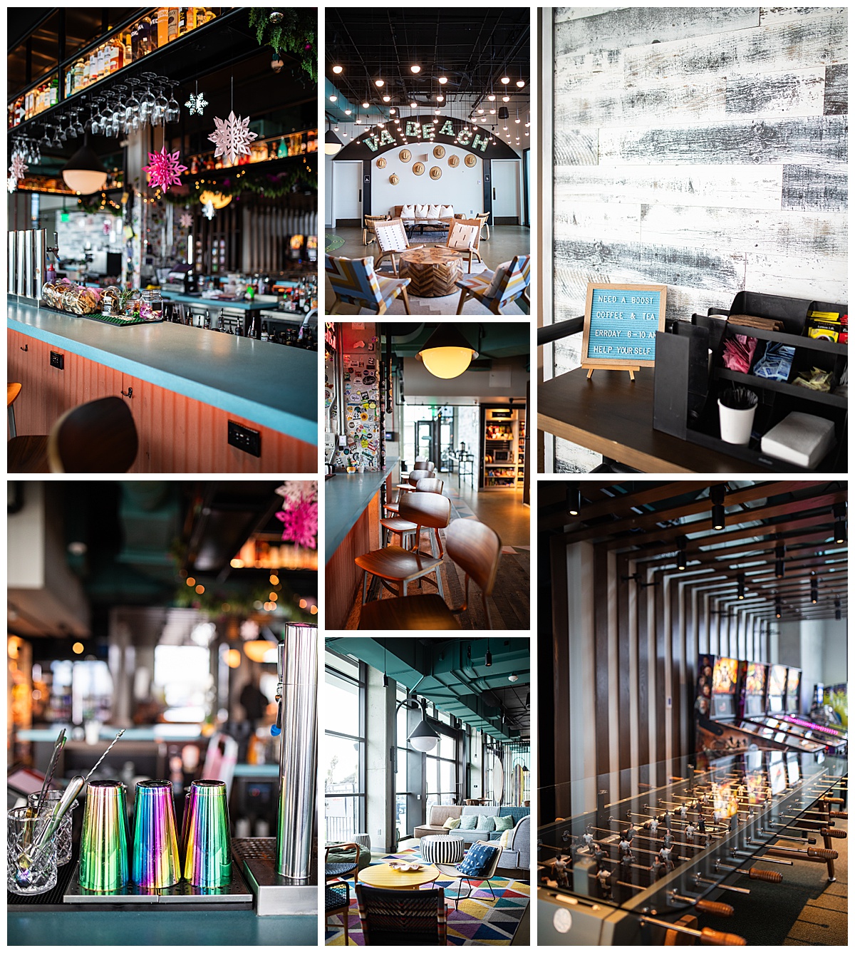 Chris and I stayed at the Moxy Virginia Beach Oceanfront right after New Years. The hotel was still pretty busy, but it didn’t feel like it. They added in some really cool features, like a record player in our room that played Weezer right when we walked in, and an Instax camera to make memories with. Granted, we were there to also create great content for the hotel – but it was awesome to have those features for us! We went to dinner at Esoteric, and came back and had drinks at the bar. Our awesome bartenders also made some non-alcoholic drinks for Dry January for us to create content for and feature that were just as delicious!