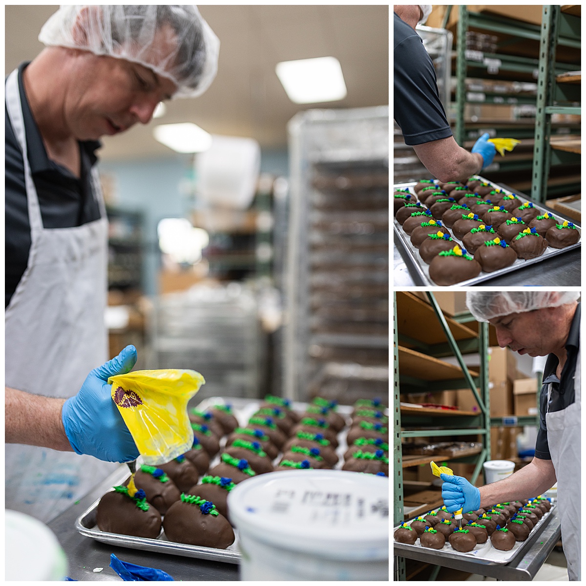 While Forbes Candies has changed hands a few times over the years, it’s still owned by someone who has spent years and years loving it as a local business. Marty, who runs the company, was actually in the warehouse decorating eggs. This is a company that cares so much about the community and its employees – and it’s been a pleasure to get to know them. I also would be remiss if I didn’t thank the folks over at Sugar Plum Bakery. They referred us to them, and we’re so excited to work together.